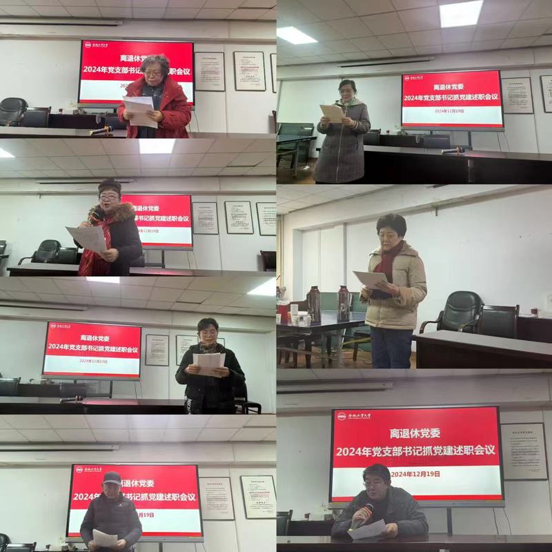 12月19日下午,离退休党委在教职工活动中心三楼老年大学教室,召开2024年度党支部书记抓党建工作述职评议会议。